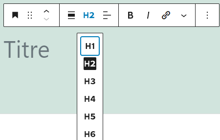 Il existe environ 6 rubriques qui définissent la structure globale du contenu d'une page Web. Ces 6 titres sont H1, H2, H3...H6.