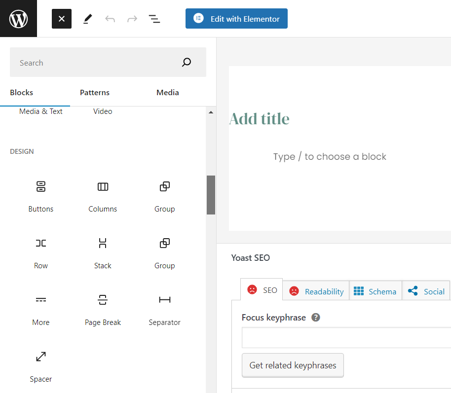 - Sous les éléments de mise en page, choisissez le bloc bouton comme indiqué dans l'image suivante :