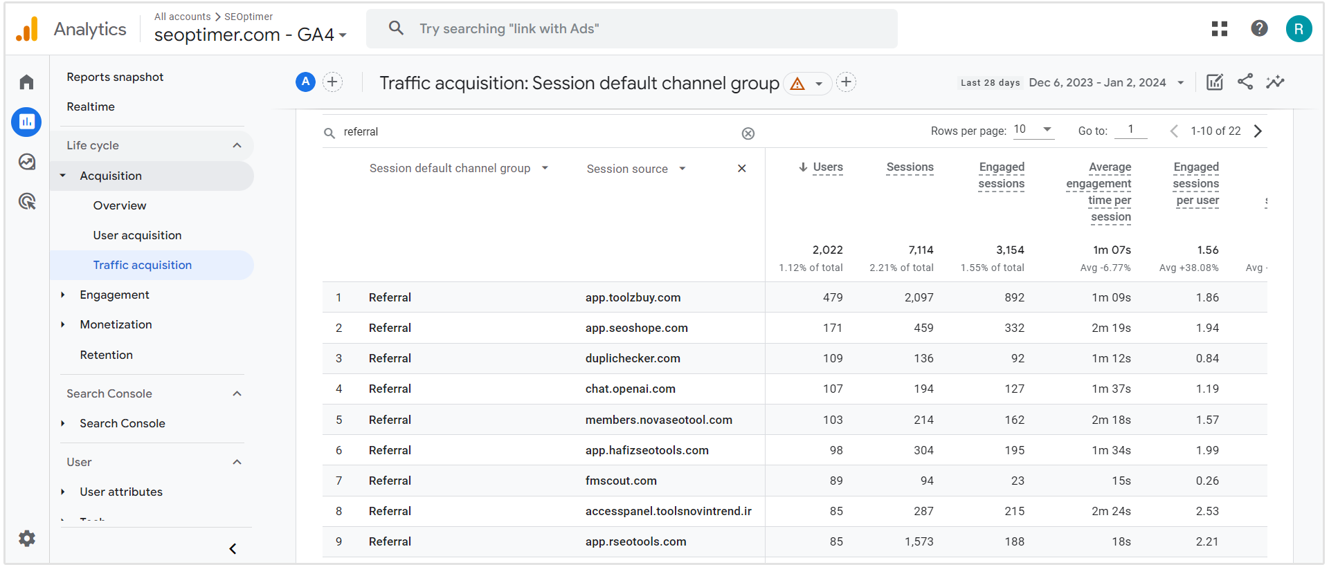 Connectez-vous à Google Analytics et ouvrez le rapport sur le trafic de référence. Sélectionnez une plage de dates d'un an.