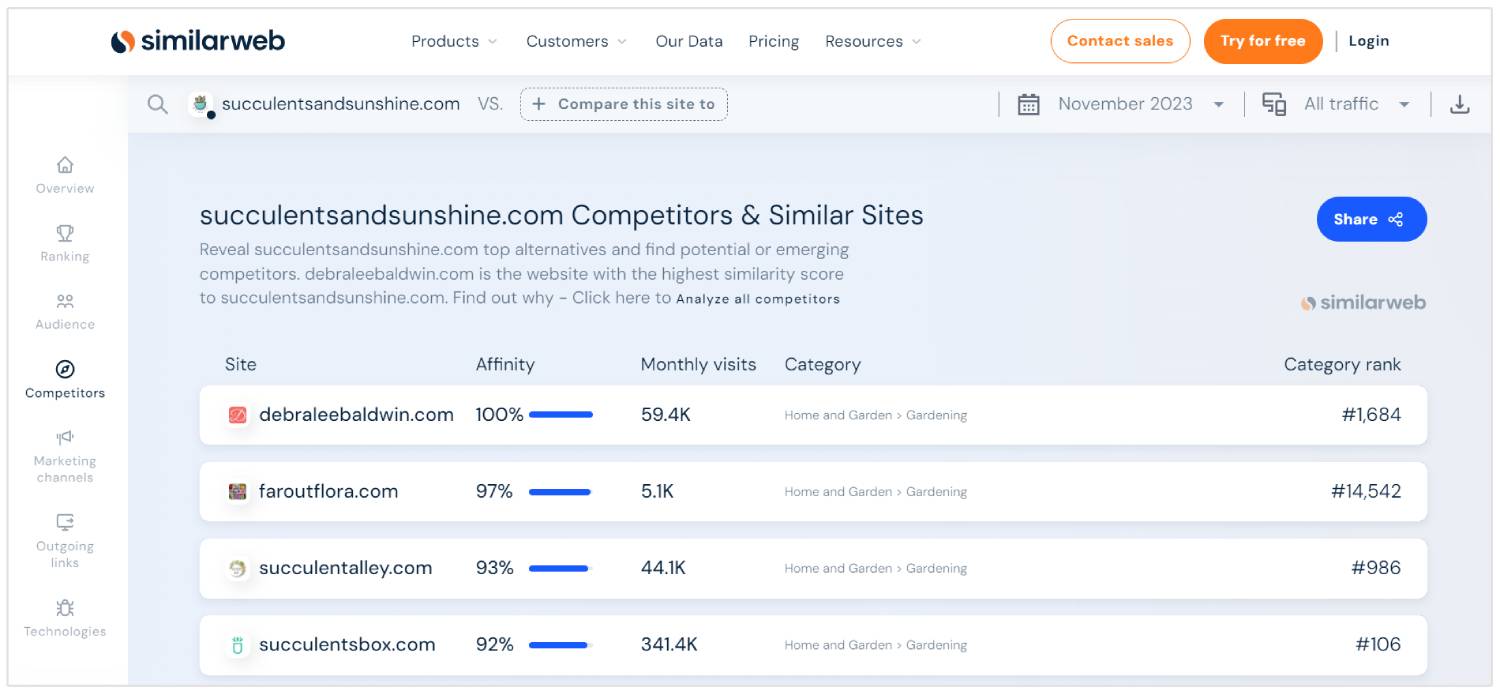 Branchez chaque domaine référent précieux dans SimilarWeb et enregistrez les résultats dans votre feuille de calcul.
