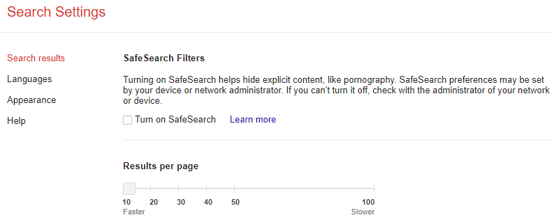 Une autre manière facile d'effectuer une recherche manuelle est de modifier les paramètres de recherche pour afficher 100 résultats par page.