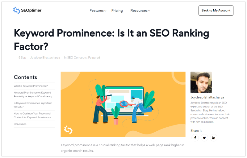Par exemple, notre article sur la "prominence des mots-clés" explique simplement ce que le terme signifie et comment optimiser vos pages et contenus pour la prominence des mots-clés. Le nombre de mots pour cet article est juste au-dessus de 1 000 mots.