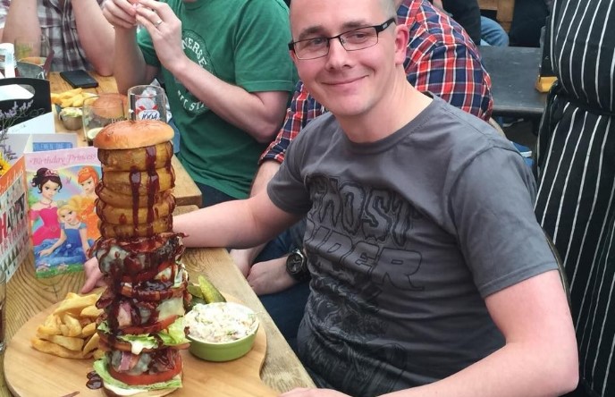 Par exemple, le restaurant Urban Burger d'Exeter a mis ses clients au défi de finir un énorme hamburger composé de sept galettes de 1,5 kg, de 14 tranches de bacon, de 7 tranches de fromage et de deux portions géantes de frites doubles (photo ci-dessus). Ceux qui parvenaient à tout avaler en 20 minutes avaient droit à un repas offert par la maison et recevaient un t-shirt gratuit.