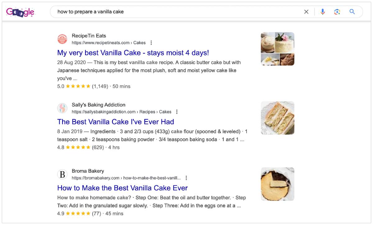 Par exemple, disons que j'ai un blog sur la pâtisserie et je veux partager une recette sur [comment] faire un gâteau à la vanille.