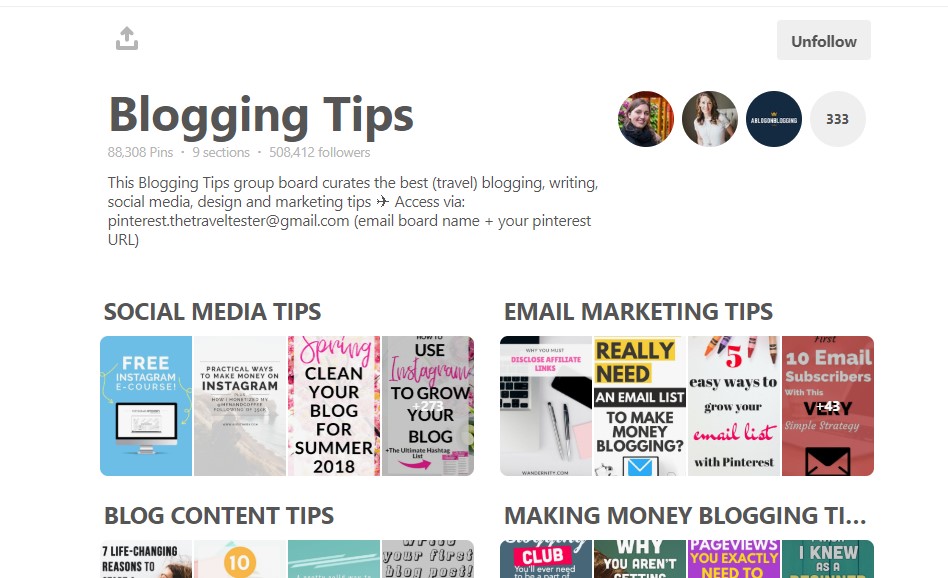 Par conséquent, vous devez le publier sur des tableaux de groupes existants avec beaucoup d'abonnés.