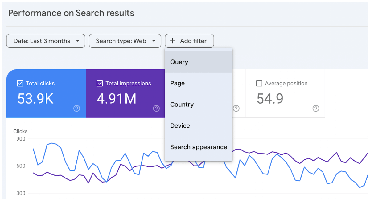 Vous verrez également une option Filtrer. Cliquez dessus et entrez le mot-clé (requête de recherche) dont vous souhaitez connaître le classement.