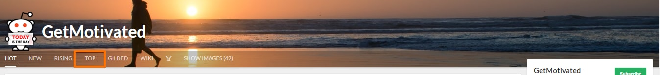 Une astuce pour facilement trouver ce qui est populaire sur un subreddit est de trier le contenu par l'option "top". Cela vous montrera les soumissions populaires sur un subreddit sur une période donnée.