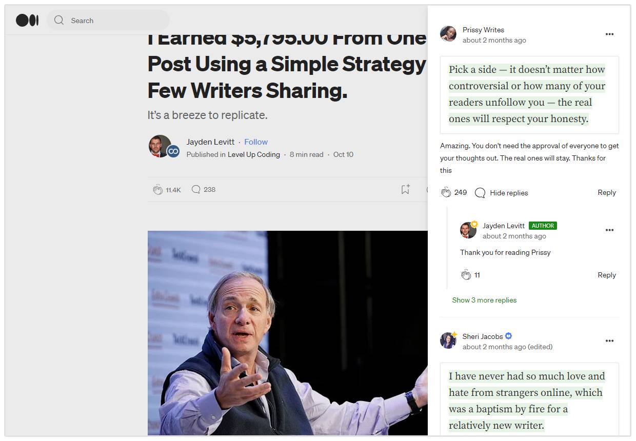 - Interagissez avec d'autres auteurs : Puisque Medium est, dans son essence, une plateforme de médias sociaux, commenter l'histoire de quelqu'un d'autre et créer une conversation avec eux est un moyen efficace de présenter votre contenu à d'autres.