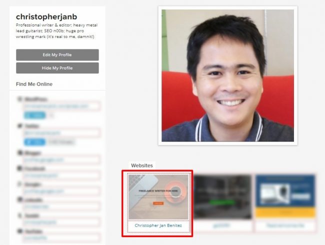 Une fois que vous avez ajouté votre site et rempli votre profil, cliquez sur le lien Voir le Profil en bas. De là, votre page de profil se charge où le lien vers votre site sera visible.