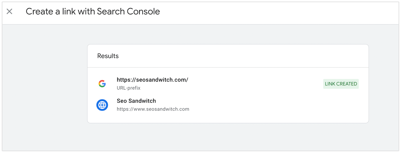 Sekarang, Anda dapat melihat tautan properti Anda yang dibuat di bawah tautan Search Console.