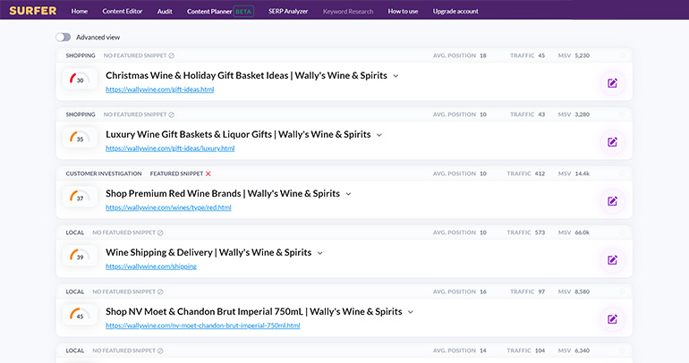 Surfer adalah alat perencanaan konten yang membantu Anda mengidentifikasi halaman dan postingan yang telah Anda terbitkan yang bisa mendapatkan manfaat dari beberapa optimasi.