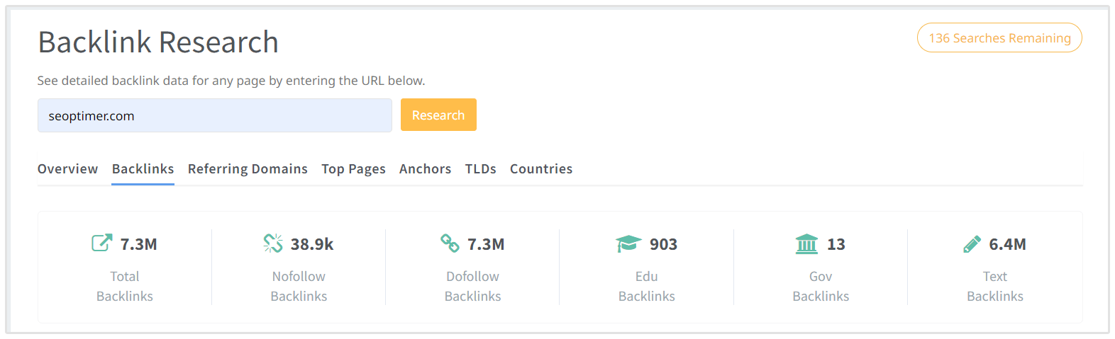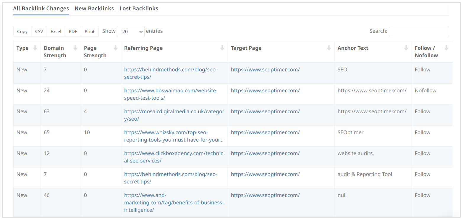 Anda dapat memperoleh daftar semua backlink pesaing Anda beserta laporan tentang semua tautan baru mereka, dengan menggunakan SEOptimer.