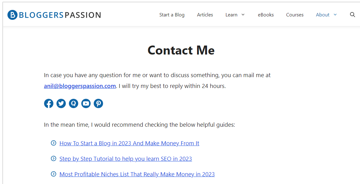 Jika situs tersebut memiliki reputasi apa pun, mereka akan memiliki halaman kontak atau formulir di suatu tempat di situs, seperti ini: