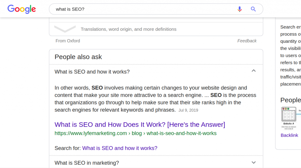 Ini juga dapat digunakan pada halaman FAQ di mana hanya sebagian dari jawaban yang ditampilkan dan pembaca perlu mengklik ‘baca lebih lanjut’ untuk melihat sisa jawaban atau pada hasil mesin pencari di mana hanya sebagian dari deskripsi meta yang ditampilkan.