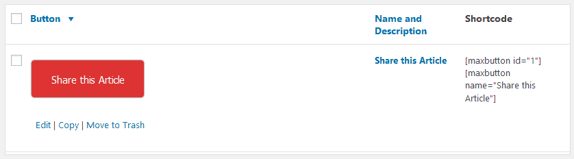 - Kembali ke dasbor MaxButton dan Anda akan melihat shortcode yang dihasilkan.