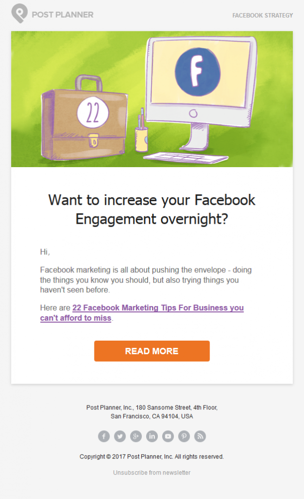 Tombol baca lebih lanjut juga digunakan dalam email seperti yang ditunjukkan pada gambar berikut: