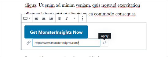 - Tambahkan teks tombol dan URL yang Anda inginkan agar tombol tersebut menuju ke sana