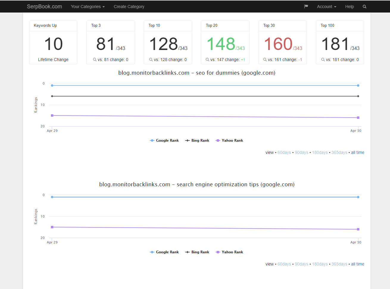 Di conseguenza, questa sezione si concentrerà sulle funzioni principali di tracciamento delle parole chiave fornite sia da Monitor Backlinks che da SerpBook e le confronterà di conseguenza.