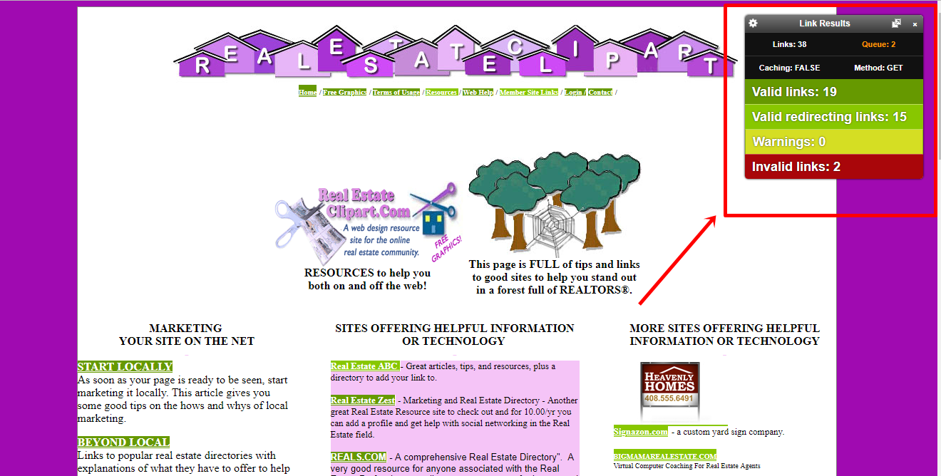 Gli incidenti accadono e i link si rompono. Questa è un'ottima occasione per intervenire e rivendicare quel posto perso per la tua attività. Prima di tutto, cerca pagine che rimandano ad altre attività immobiliari; un ottimo punto di partenza sono le pagine di risorse.