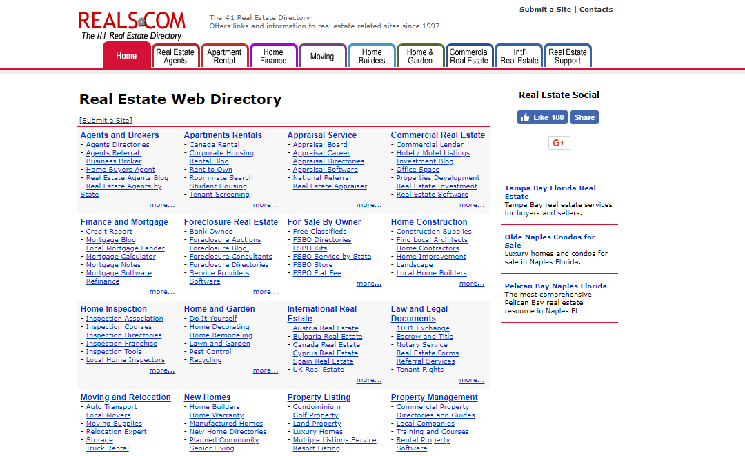 Le directory immobiliari sono come pagine di risorse, ma sono esclusivamente focalizzate sulla presentazione di siti web pertinenti. Un esempio è la Reals Directory.