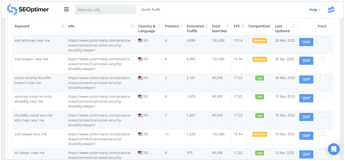 Per monitorare i tuoi progressi con le parole chiave, utilizza uno strumento come il SEOptimer Keyword Tracking Tool, che fornisce dati accurati sulle posizioni delle tue parole chiave nei diversi motori di ricerca.