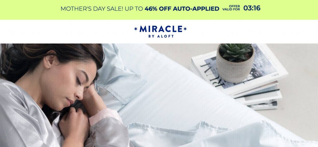 Il marchio sta utilizzando la fase di consapevolezza per informare i visitatori su quali qualità elevano i loro prodotti al di sopra delle lenzuola tradizionali e perché dovrebbero mettere le mani su lenzuola Miracle offrendo loro un ulteriore sconto del 20% per un periodo limitato.
