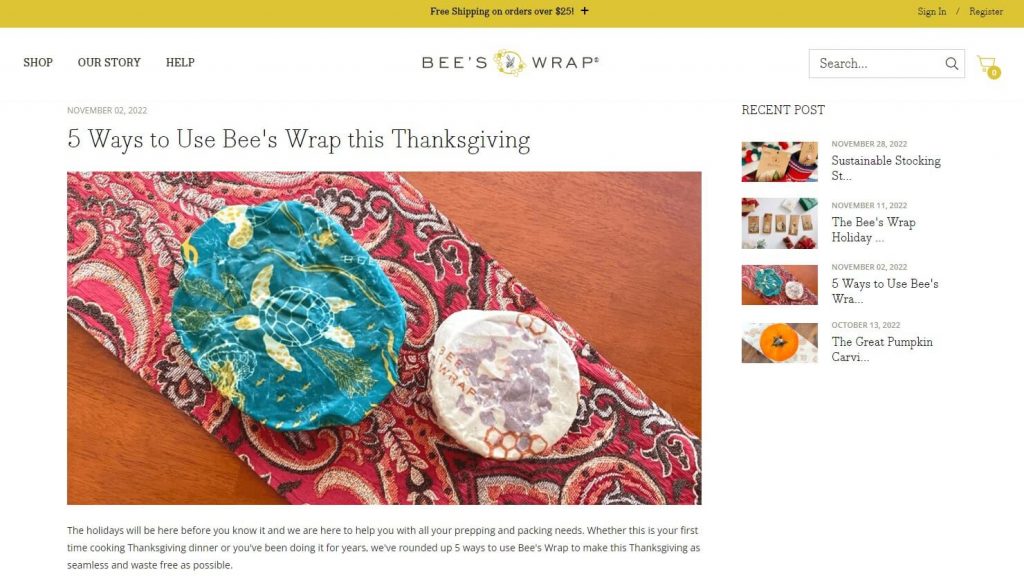 La sezione del blog ha l'obiettivo di educare le persone condividendo diversi consigli e trucchi che possono fare con Bee’s Wrap.
