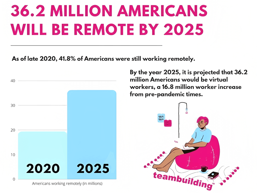 In effetti, il lavoro remoto è qui per restare. Studi mostrano che entro il 2025, 36,2 milioni di americani lavoreranno da remoto. Questo rappresenta un aumento di 16,8 milioni rispetto a prima dell'inizio della pandemia.