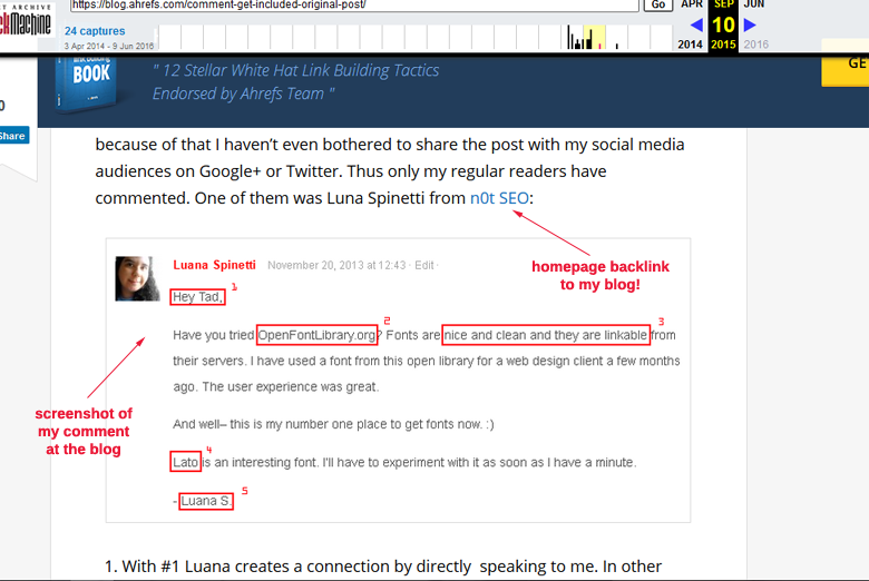 私を信じてください、2014年にあるブロガーの投稿(私が尊敬する人)に素晴らしいコメントを残したことで、ホームページのバックリンクを得ました。