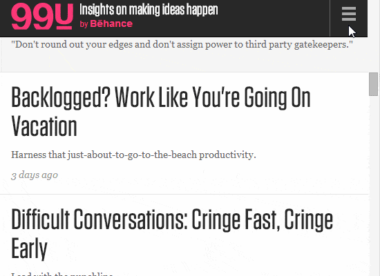 これはハンバーガーメニューで、モバイルデバイスでよく見かけるものです: