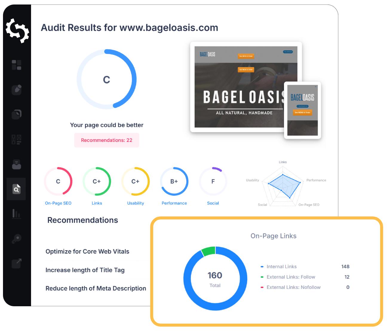 メタタグとキーワードの使用からモバイル最適化、速度パフォーマンス、バックリンクまで、SEOptimerはランキングを改善するためのあらゆる機会を見つけ出します。