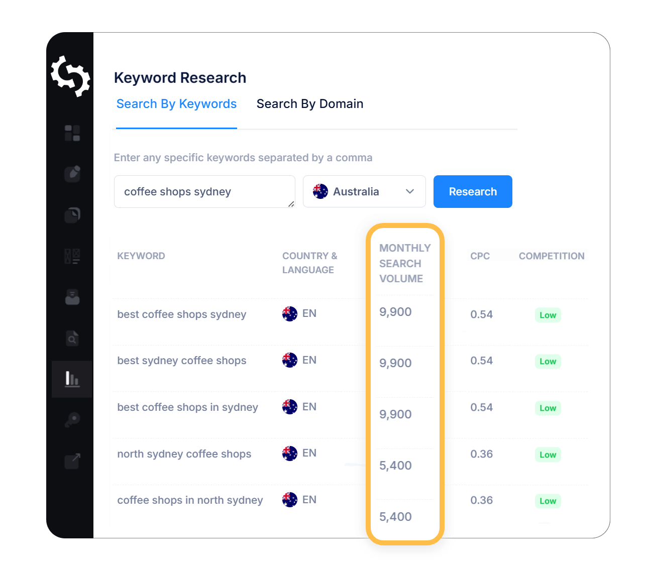 検索ボリューム、競争スコア、推定トラフィック、そして同等のCPCについての洞察を得られます。