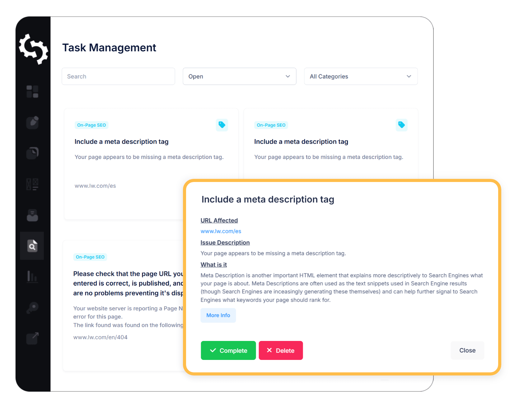 サイトの実際の問題に基づいて自動的にタスクを生成し、何が問題なのか、どのように修正するかを説明します。