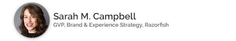 We spraken met Sarah M. Campbell, GVP Brand & Experience Strategy bij een van 's werelds grootste interactieve bureaus, Razorfish (onderdeel van de Publicis Groupe). Ze heeft het consumentenvertrouwen en de doorwerkingseffecten op bedrijven geanalyseerd. Sarah schetste 3 belangrijke inzichten uit het uitgebreide onderzoek van het bureau: