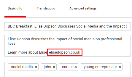 Platforms zoals Twitter, Facebook en YouTube bieden backlinks aan blogs in hun statusupdates. Hier is een voorbeeld van een van mijn YouTube-video:
