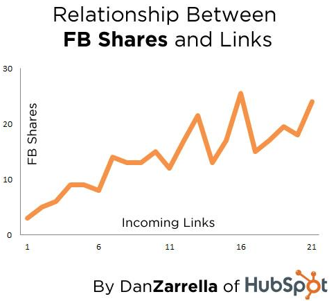 Neem eens een kijkje naar deze gegevens van Dan Zarrella van HubSpot, die een sterke correlatie vond tussen tweets en inkomende links: