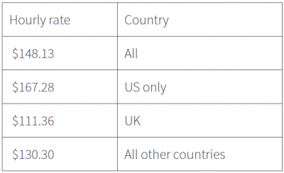 In 2019, Credo ondervroeg 271 oprichters van bureaus over de hele wereld om het gemiddelde uurtarief van digitale marketingconsultants en -bureaus te vinden. Ze ontdekten dat het wereldwijde gemiddelde uurtarief $148.13 was.