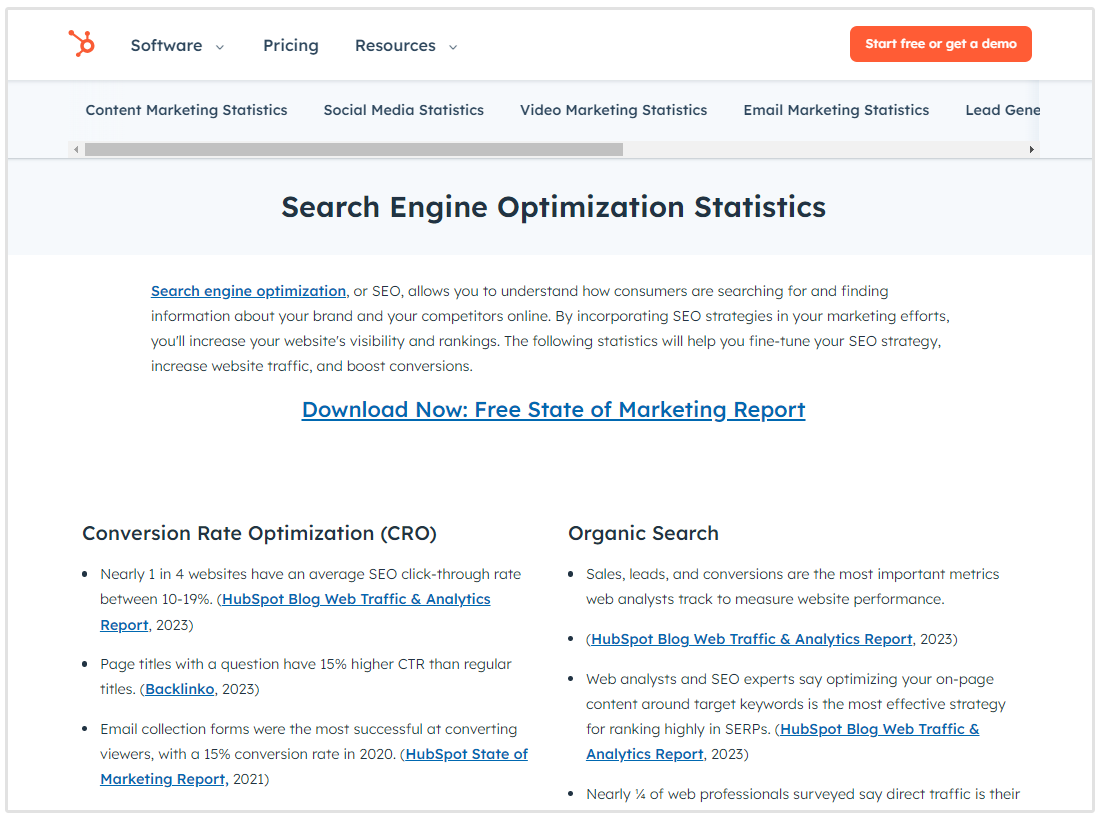 En als je een beetje lijkt op HubSpot, heb je een fantastische verzameling van elke relevante statistiek die ik nodig zou kunnen hebben, mooi verpakt, en verdien je minstens een of twee natuurlijke backlinks in het proces.