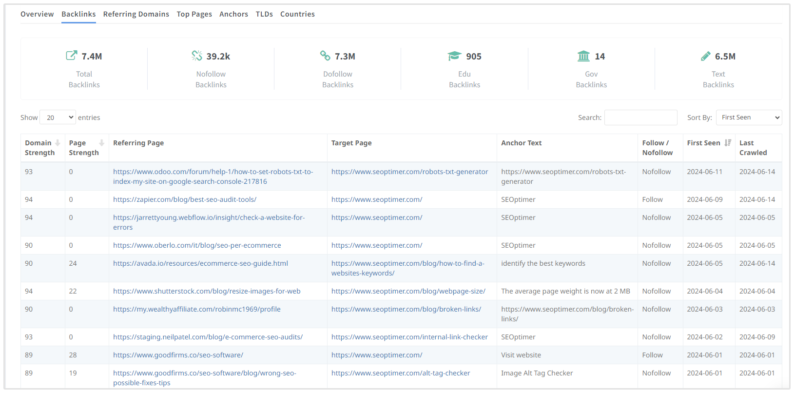 Voer een backlinkrapport uit met SEOptimer om externe links te identificeren die naar meer territoriumspecifieke inhoud op uw website kunnen wijzen. Kijk gewoon naar de "TLD/IP" kolom om te zien uit welke landen uw backlinks komen.