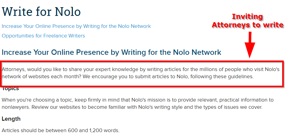 Bijvoorbeeld, Nolo biedt advocaten een kans om voor hen te schrijven.