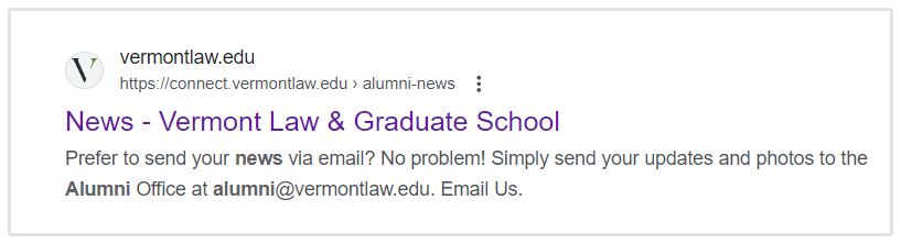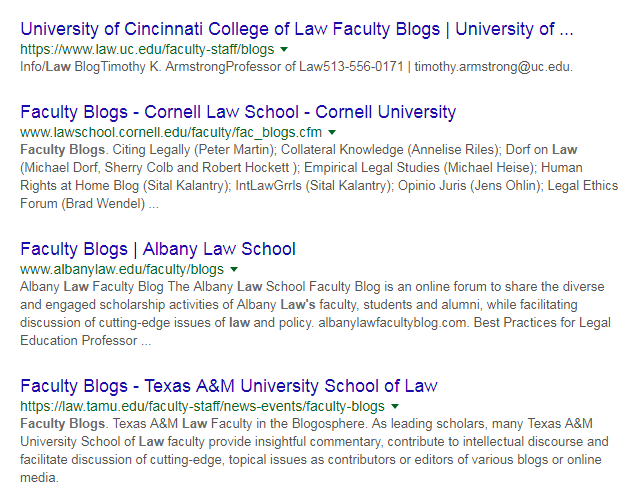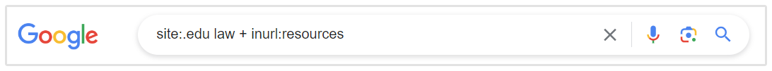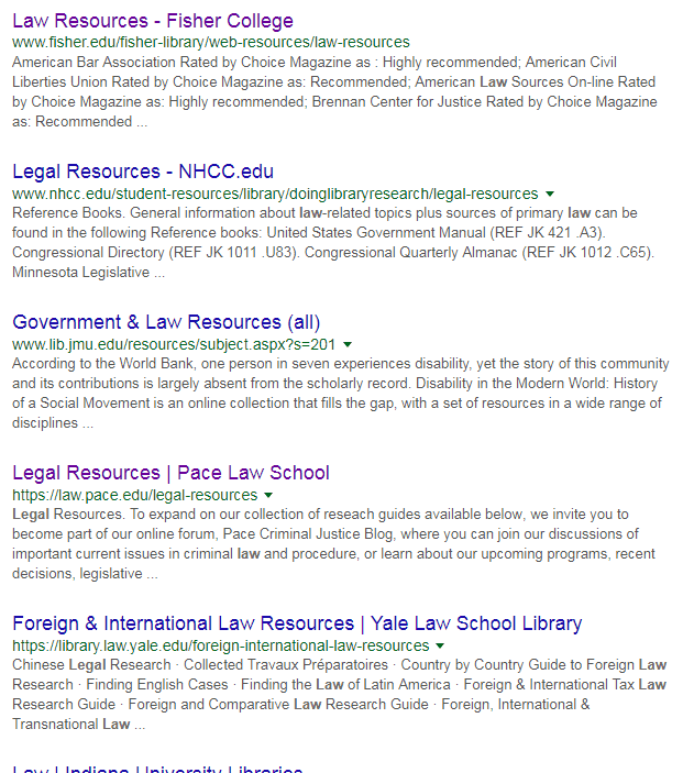 De SERP toont een goede lijst van .edu juridische [resource]pagina's.