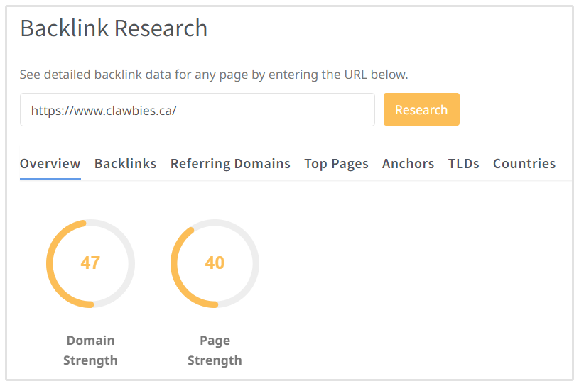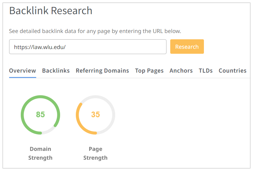Je kunt de Backlink Research tool van SEOptimer gebruiken om de Domain en Page Strength scores te controleren van sites die je target voor legale backlinks.