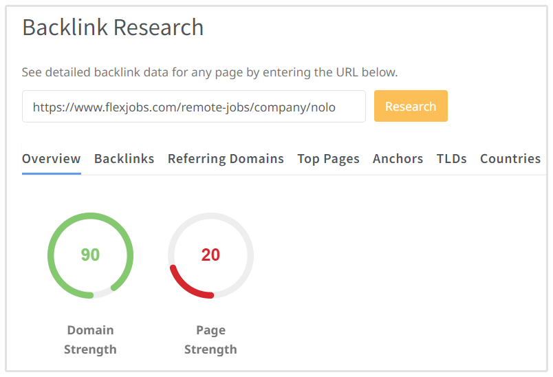 Een goede richtlijn om naar te streven is het hebben van websites met een Domein Sterkte boven de 30, en pagina's met een Pagina Sterkte boven de 40, die naar je inhoud en site linken.