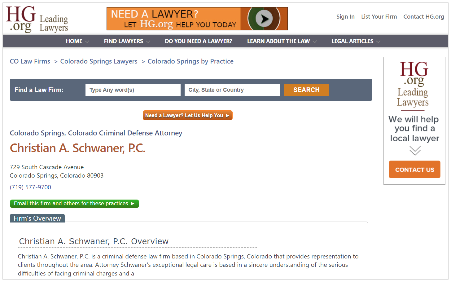 Christian Schwaner, een strafrechtadvocaat uit Colorado Springs, biedt beurzen aan kandidaten die geïnteresseerd zijn in een carrière in de juridische sector.