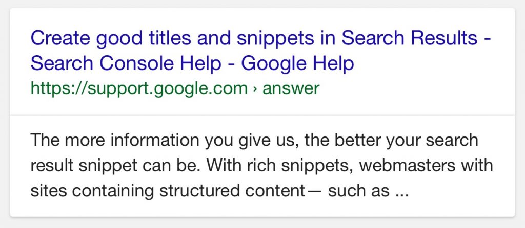 Hoe nauwkeuriger je de inhoud van de pagina beschrijft en hoe relevanter een resultaatfragment is, hoe groter de kans dat mensen op je pagina klikken.