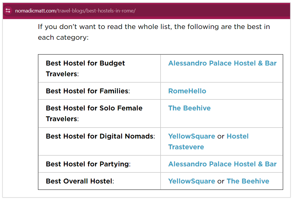 Dit zal je niet alleen nieuwe, relevante backlinks opleveren, maar ook meer mensen naar je reisblog trekken (wat, laten we eerlijk zijn, het hele punt is van het verkrijgen van backlinks!).