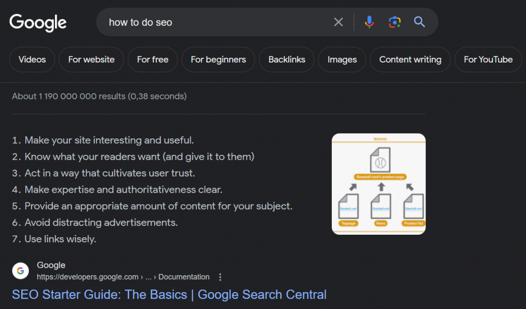 Bovendien, als de zoekmachine een uitgelichte snippet genereert voor de query, kan het vroeg gebruiken van het doelzoekwoord de kans vergroten dat jouw pagina wordt geselecteerd als het uitgelichte resultaat.