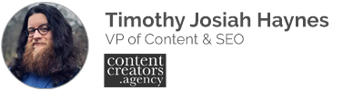 Timothy Josiah Haynes, VP van Content & SEO bij het in Tennessee gevestigde contentmarketingbureau Content Creators Agency gebruikt Clearscope.
