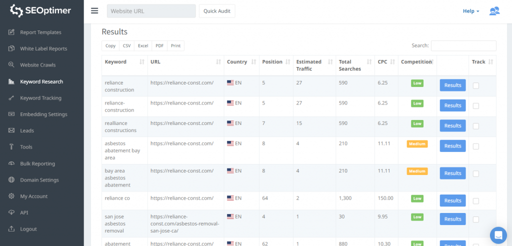 SEOptimer's keyword research tool kan worden gebruikt om een concurrentieanalyse uit te voeren om te zien voor welke [keywords] uw concurrenten ranken.