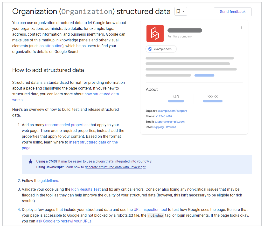 Gestructureerde gegevens zijn als een routekaart voor zoekmachines, die hen helpen de inhoud van je pagina beter te begrijpen. Door gestructureerde gegevens op te nemen, kun je je site in aanmerking laten komen voor rijke fragmenten, die aantrekkelijkere en informatieve zoekresultaten zijn.